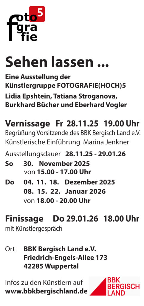 8. Ausstellung der Künstlergruppe FOTOGRAFIE(HOCH)5 des BBK Bergisch Land